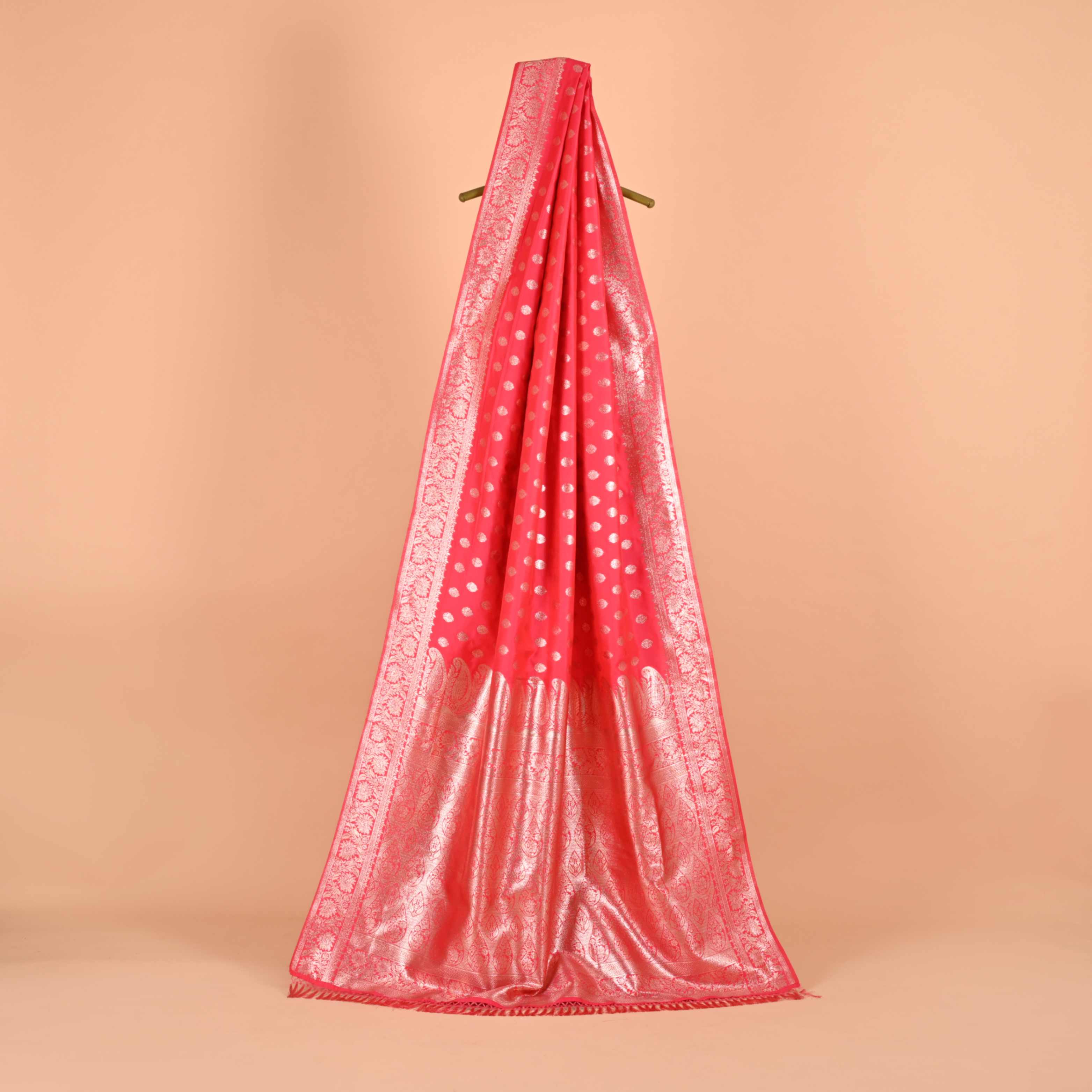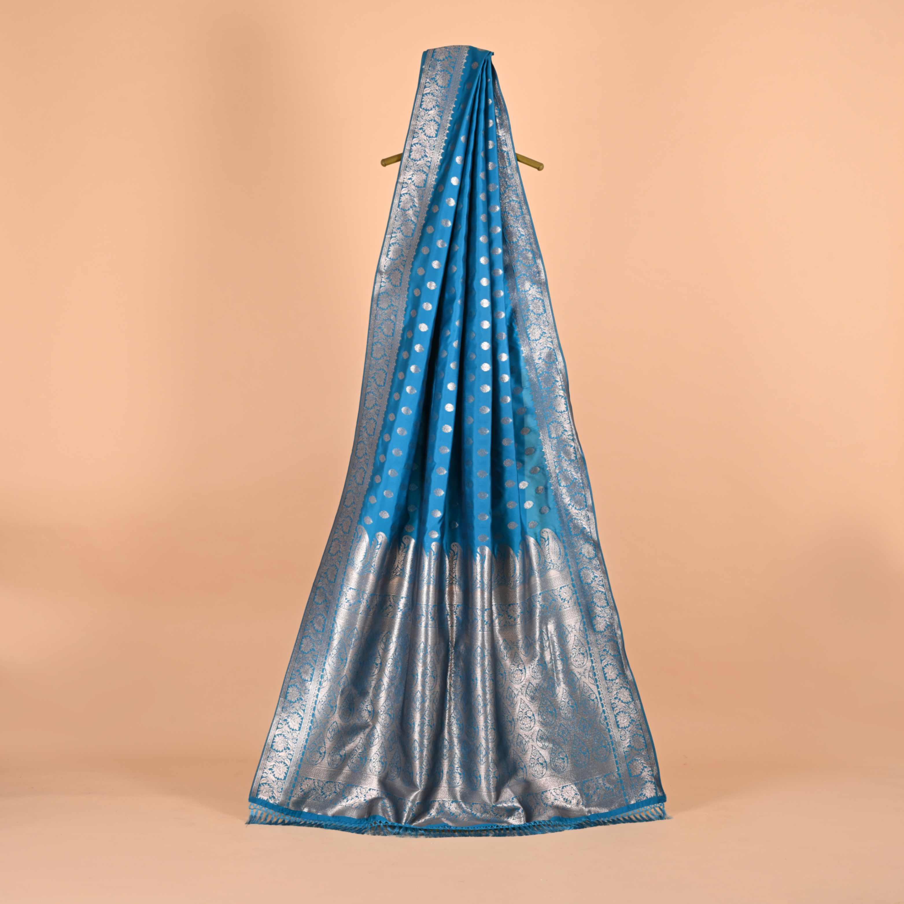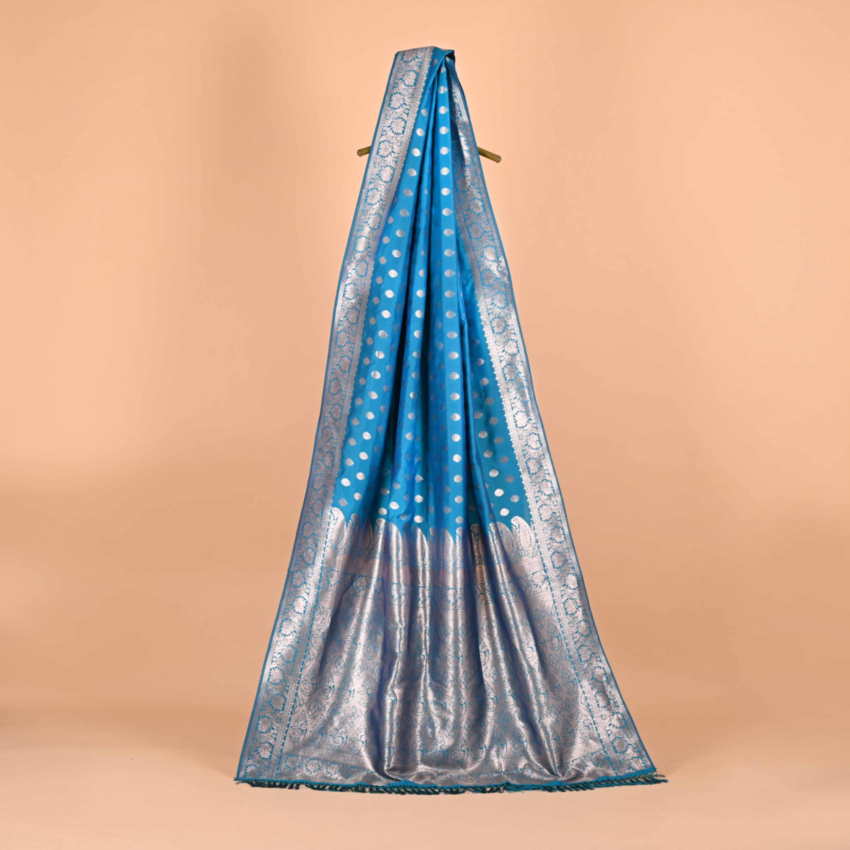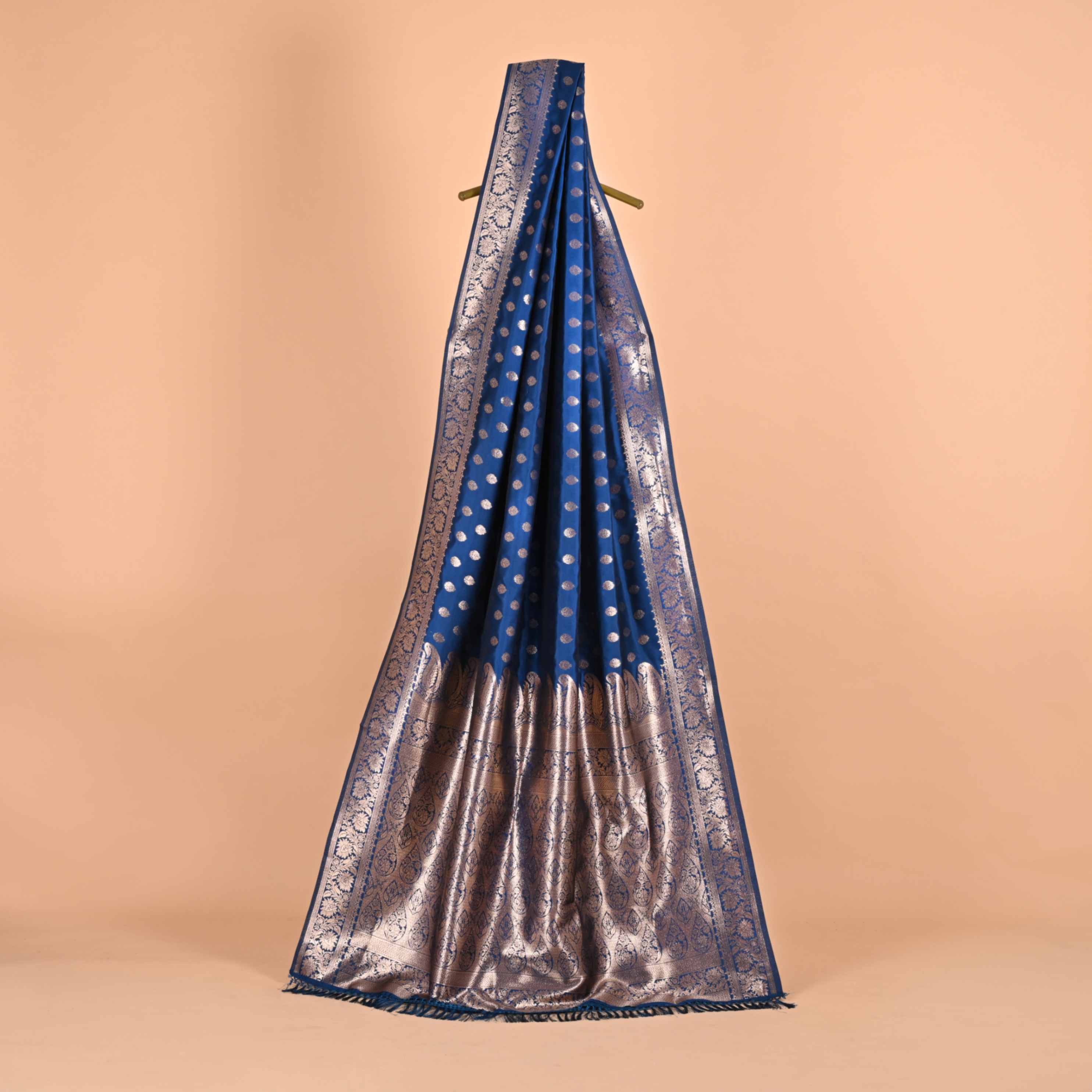 The Mehfil Zari Woven Silk Saree is an exquisite piece that features a harmonious blend of intricate zari boota work and grand floral border. Available in a range of rich colors, this saree is designed to make you stand out during festive occasions and celebrations. The luxurious gold zari detailing adds a touch of elegance and sophistication, making it a perfect choice for weddings and grand events.
