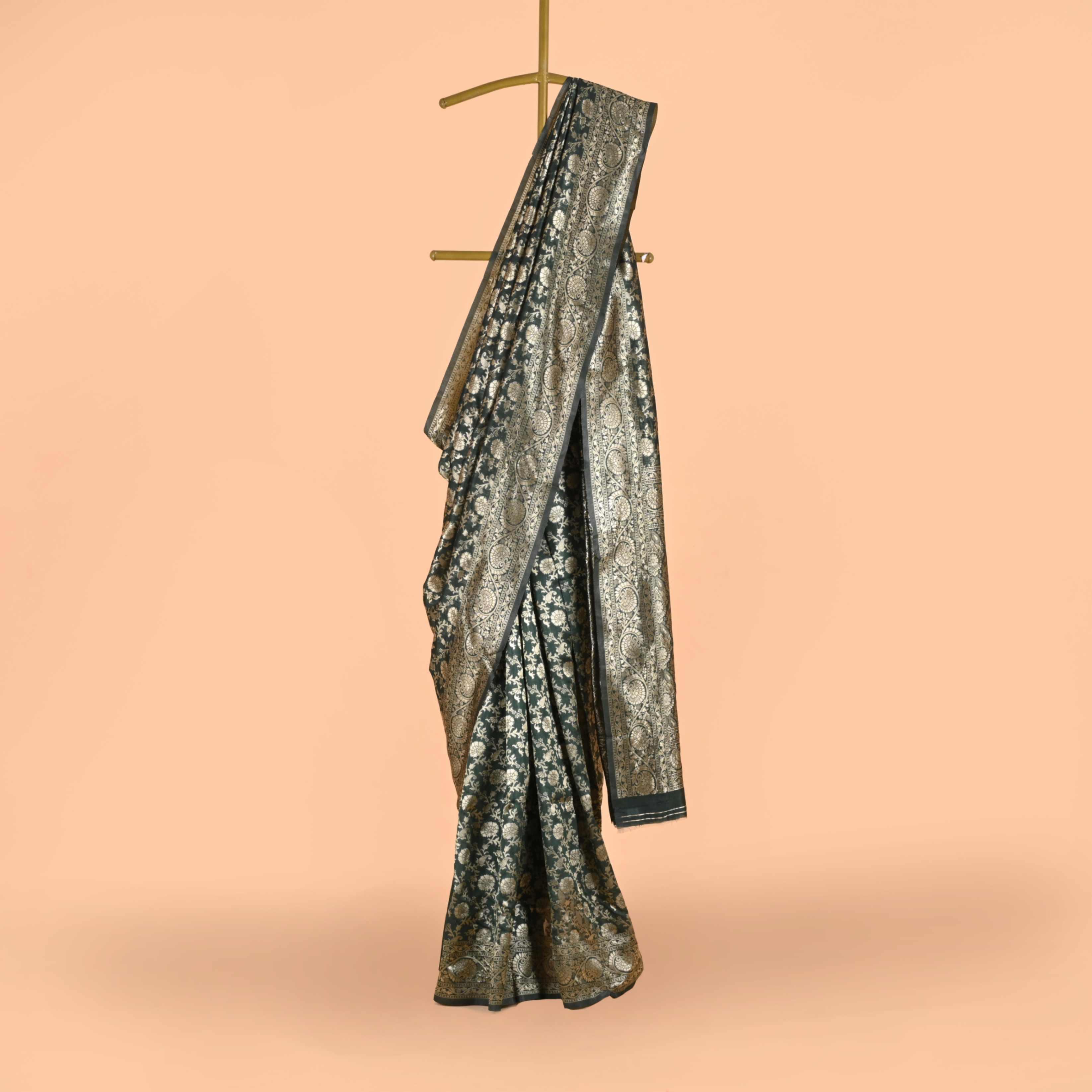 The Vanashree Floral Zari Silk Saree showcases a luxurious floral jaal design, beautifully intertwined with traditional motifs. Crafted with intricate zari work on a vibrant silk base, this saree is perfect for those who appreciate the elegance of detailed craftsmanship. The rich borders and the opulent floral patterns make it a must-have for festive celebrations and special occasions. Available in an array of stunning color combinations, it is a blend of timeless tradition and modern luxury.