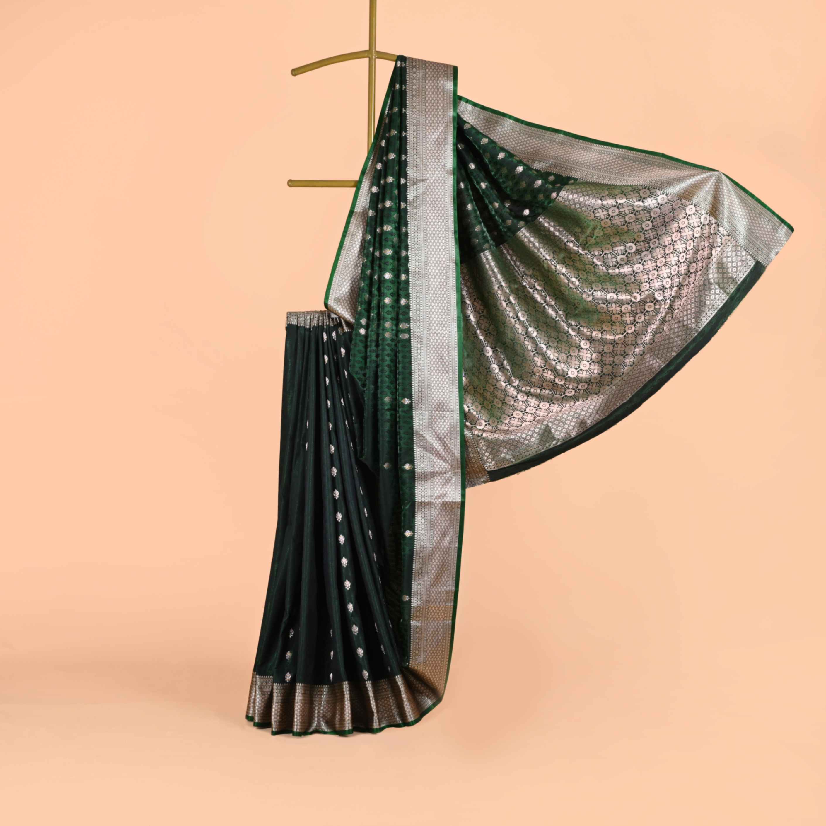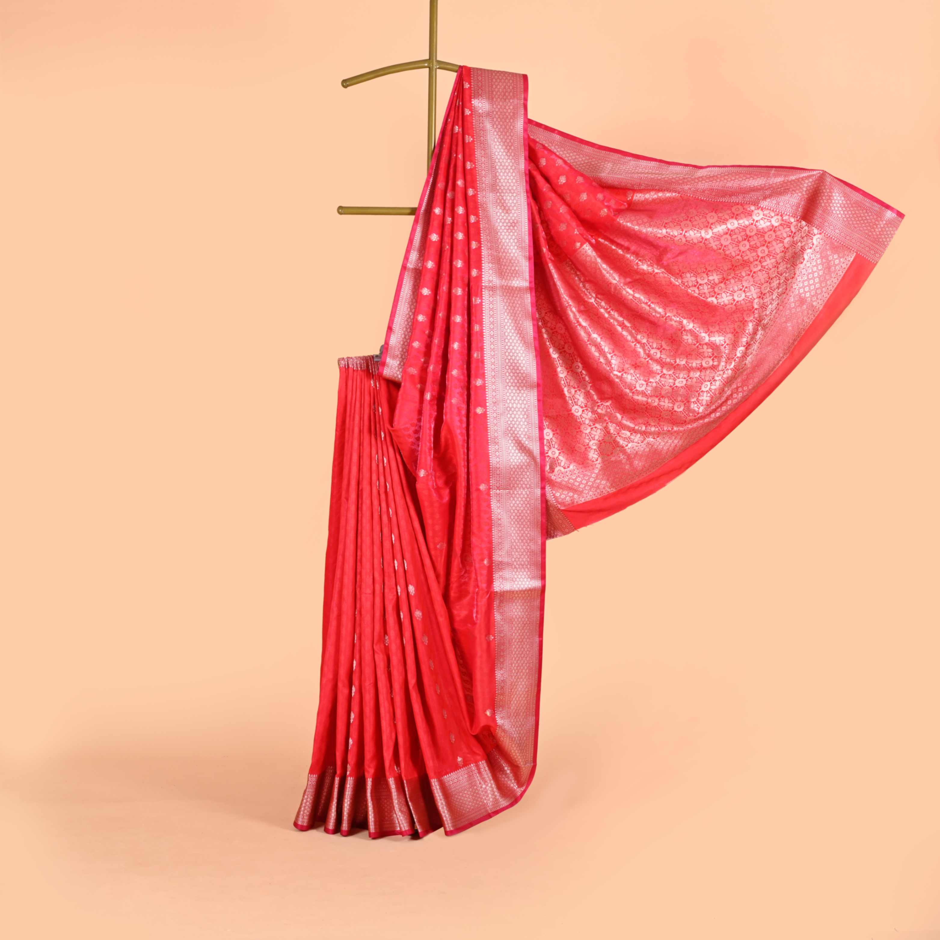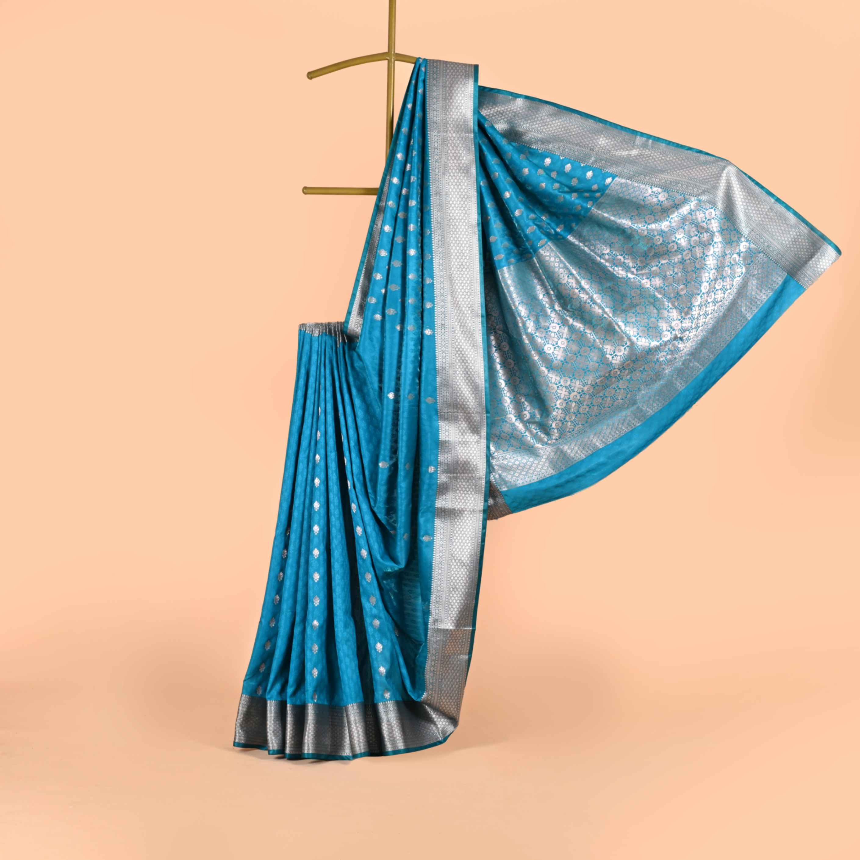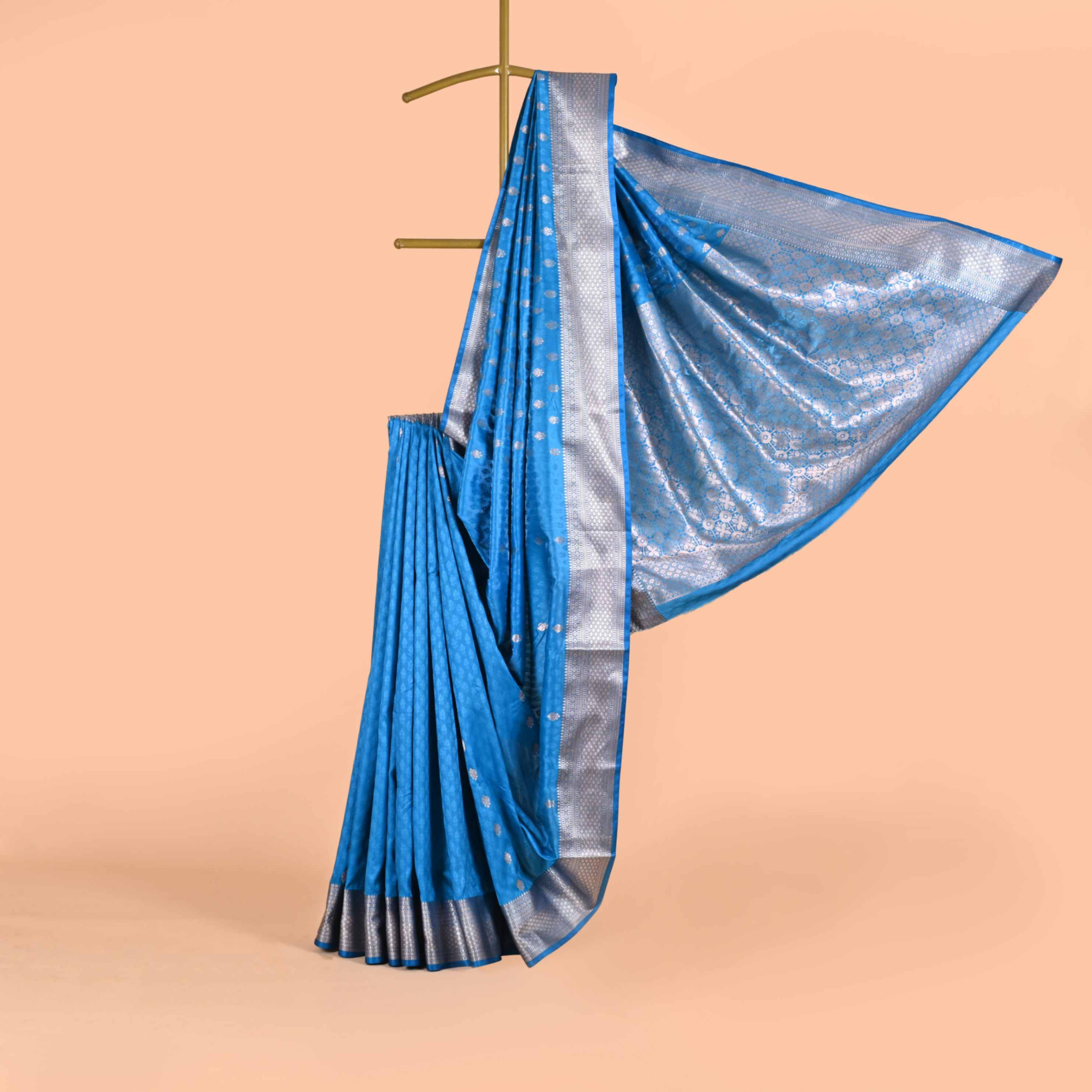 The Vrinda Zari Buti Silk Saree showcases a timeless buti pattern intricately woven with rich zari work. The saree is further accentuated by its beautifully crafted borders. Available in an array of vibrant colors, this saree is the epitome of traditional elegance, making it an ideal choice for festive celebrations and cultural ceremonies.